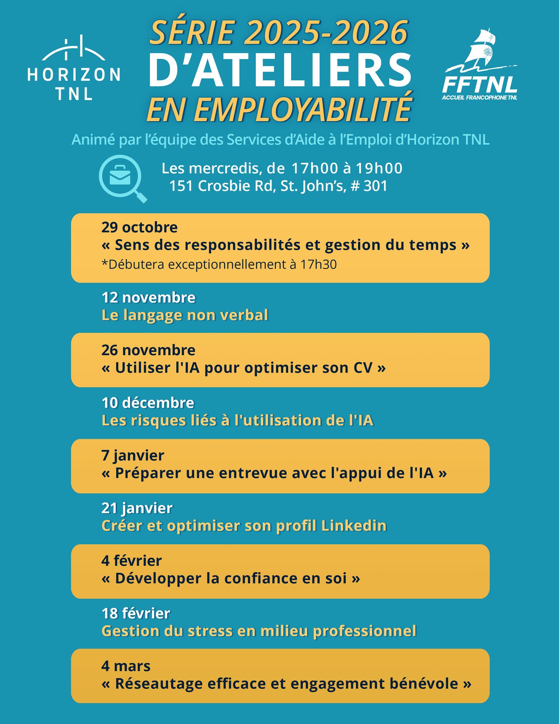 AVIS DE DÉMÉNAGEMENT Horizon TNL proposera désormais ses services aux francophones et aux personnes bilingues dans un nouvel espace ouvert à la fois accueillant et facile d'accès. Nous serons opérationnels dans ce nouveau bureau à partir du 8 juilllet 2025. 151 Crosbie Rd, St. John’s. Suite 402. Près de l’Avalon Mall.